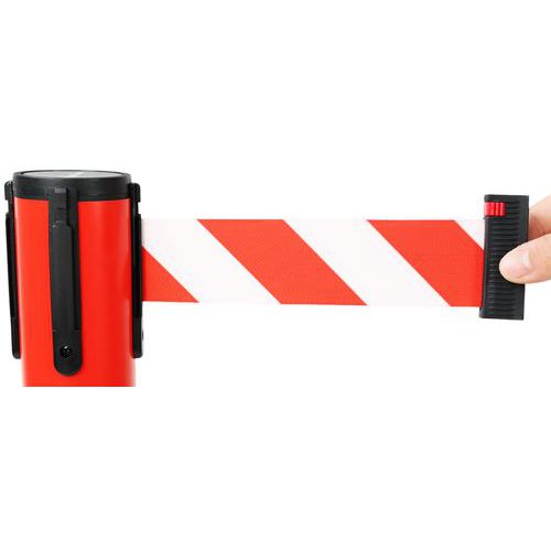 - Poteau à sangle étirable hachurée offrant ainsi une délimitaiton claire en un coup d'oeil.
