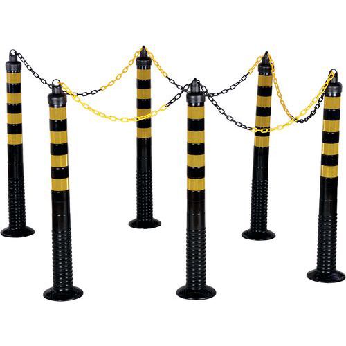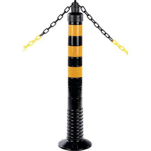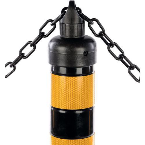 Poteau de protection en acier robuste servant à protéger les équipements ou les machines des coups éventuels portés par les engins de manutention. Bonne visibilité grâce à son coloris bi-colore jaune/noir. Convient aussi bien pour une utilisation intérieur qu'extérieur. Fixation au sol grâce à ses platines 4 trous Ø 12.5 mm. Certificat du TÜV.
