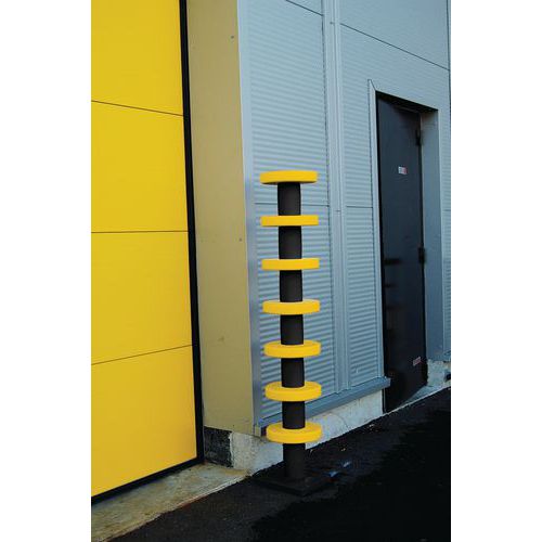 Poteau de protection Pargom recommandé pour le balisage et la protection des entrées de portes, bases de pilliers, angles de machines ou de murs contre les chocs des engins de manutention.