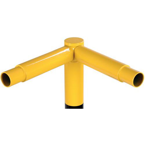 Poteau pour barrière de protection modulable. Stabilité garantie grâce à sa fixation par platine. Utilisation extérieure possible grâce à la galvanisation. Bonne visibilité grâce à la couleur jaune trafic de sécurité avec bande noire. Installation facile. Les composants individuels du système sont attachés sans vis.