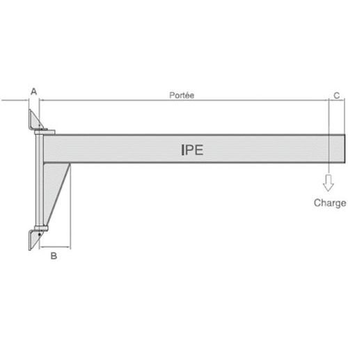 Construction mécano-soudée très robuste. Flèche en fer profilée IPE. Rotation du bras aisée sur bagues auto-lubrifiantes. Rotation 180°. Peinture jaune (RAL 1028). Disponible avec une portée de 2, 3, 4 ou 5 m. Autres portées : nous consulter. Poids : selon modèle, nous consulter. Options possibles : ligne d'alimentation électrique, chariot porte-palan, palan électrique ou manuel, fixations spéciales sur poteaux, peinture spéciale, version mobile déplaçable, interrupteur cadenassable… Mise en place et installation : nous consulter.