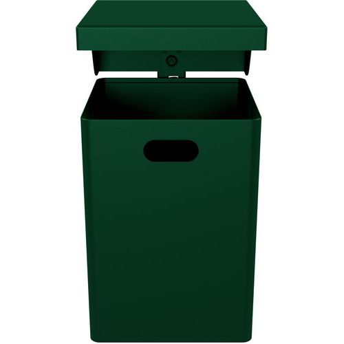 | Intitulé du produit | Poubelle à déchets rectangulaire toit revêtement-Schake, Capacité: 40 L, Ouverture: Frontale, Matériau: Zinc |