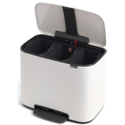 Poubelle à pédale BO 3x11L, Brabantia, Capacité: 33 L, Matériau: Plastique, Corps coloris: Blanc