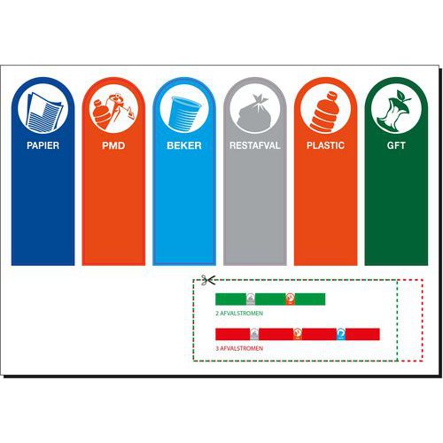 Etiquettes d'indication des flux de tri en néerlandais inclus.