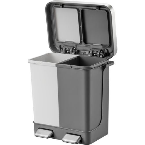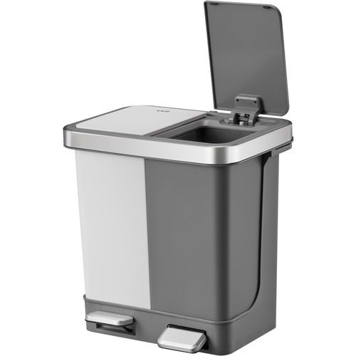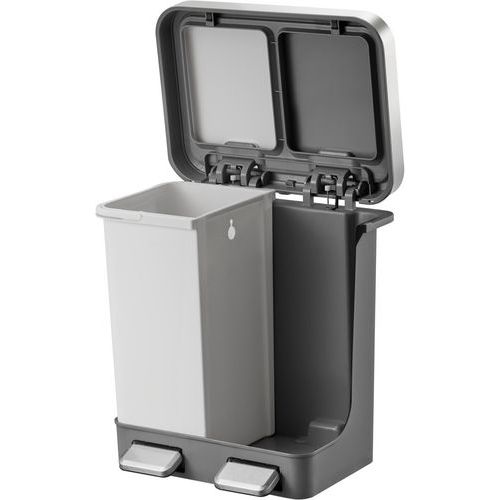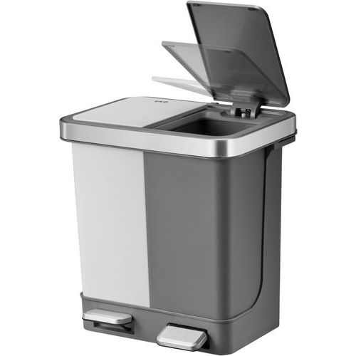 | Intitulé du produit | Poubelle à pédale tri sélectif Hana Duo, Capacité: 20 L, Poids: 2.66 kg, Corps coloris: Blanc/gris |