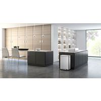 Cette poubelle en Inox brossé a une finition anti-traces de doigts et un revêtement anti-bactérien nano argent.