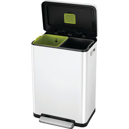 Poubelle à pédale X-Cube tri sélectif 20+20L, EKO, Capacité: 40 L, Matériau: Inox, Coloris: Blanc
