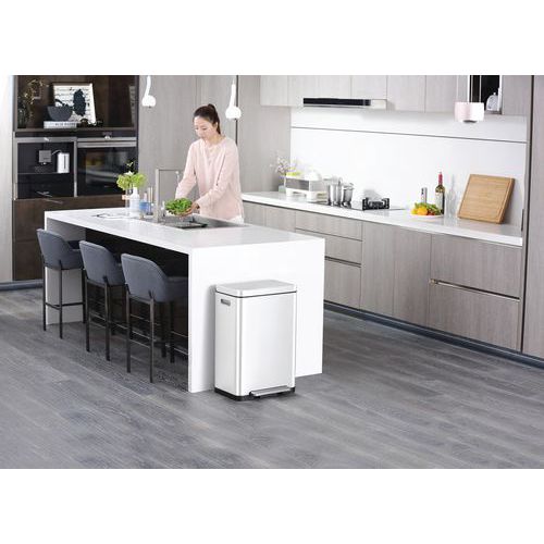 Poubelle élégante rectangulaire équipée d'une pédale extra-large, de 2 liners en matière synthétique (2x20L), d'un couvercle à fermeture silencieuse et de la fonction 'stay-open'.