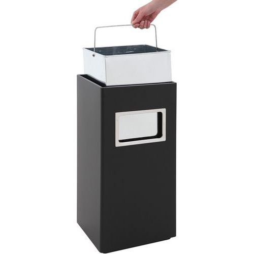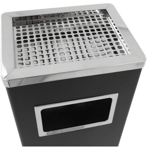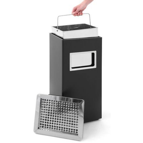 | Intitulé du produit | Poubelle-cendrier 14,5L, Cendrier capacité: 2 L, Poubelle capacité: 14.5 L, Coloris: Noir, Matériau: Inox |