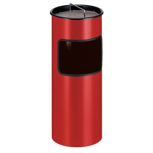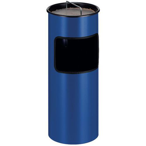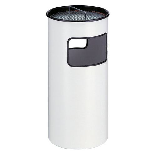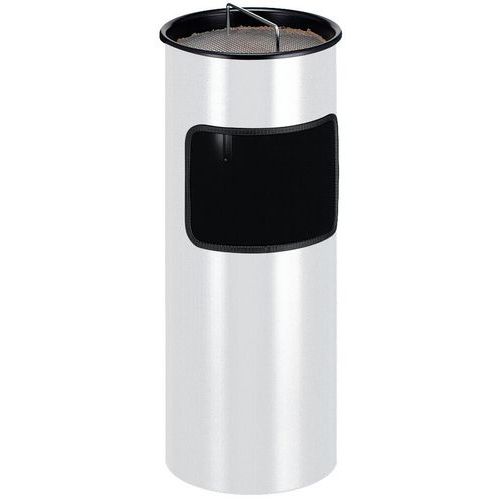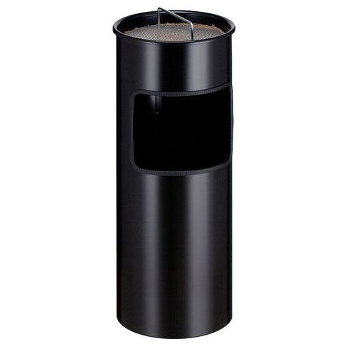 - Poubelle-cendrier anti-feu ronde avec liner en métal. Équipée d'un tamis et d'une plaque noire. Sable cendrier inclus.