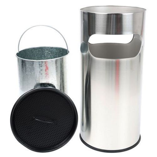 - Poubelle-cendrier anti-feu en Inox ronde avec liner en métal.