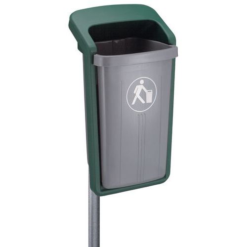 - Poubelle en plastique PEHD résistant aux UV pour fixation murale ou sur poteau.