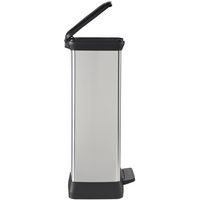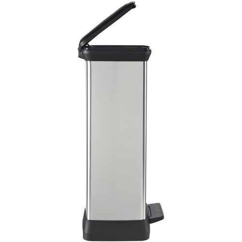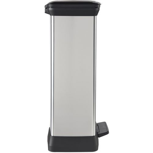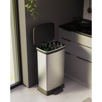 Poubelle à pédale rectangulaire en matière synthétique à l'aspect métal Fabriquée à partir de 70% de matériaux recyclés Equipée de deux seaux intérieur (2x23L) en plastique Facile à nettoyer.