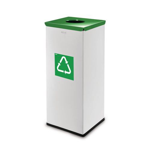 Les poubelles métalliques EKO Square pour les déchets triés sont fabriquées en acier avec un revêtement en poudre organique (RAL 96), ce qui augmente la durabilité et les propriétés anticorrosion. Couvercles de différentes couleurs (jaune RAL 123, bleu RAL 52, noir RAL 95, vert RAL 65). Les paniers comportent un pictogramme de la couleur du couvercle. La base en caoutchouc antidérapant améliore la stabilité du panier et protège le sol des dommages. Possibilité de connecter des paniers. Fixation pour support de sac poubelle.