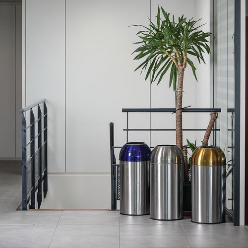 Poubelle Open Dôme au design moderne. Entretien facile grâce à sa surface lisse. Résistante via matériau en inox. Bac intérieur amovible en aluminium facile à retirer via poignée. Couvercle Dôme de couleurs différentes, permet le tri de vos déchets. Large ouverture du couvercle (Ø 20 cm) facilitant le dépôt des déchets. Base en caoutchouc permet d'éviter les rayures au sol.