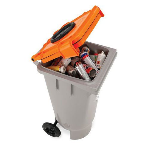 | Intitulé du produit | Poubelle pour aérosols, Capacité: 120 L, Ouverture: À fente, Matériau: Plastique, Matériau: Polyéthylène |