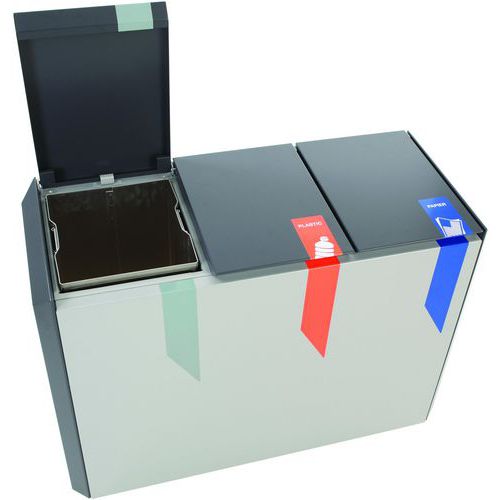 | Intitulé du produit | Poubelle RecycloStar 3_Vepabins, Capacité: 165 L, Ouverture: À fente, Matériau: Métal |