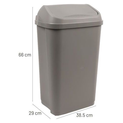 Poubelle avec couvercle permettant de dissimuler le bord du sac. Ouverture large pour un dépot des déchets propre et rapide. Poignées intégrées pour faciliter le déplacement du conteneur.