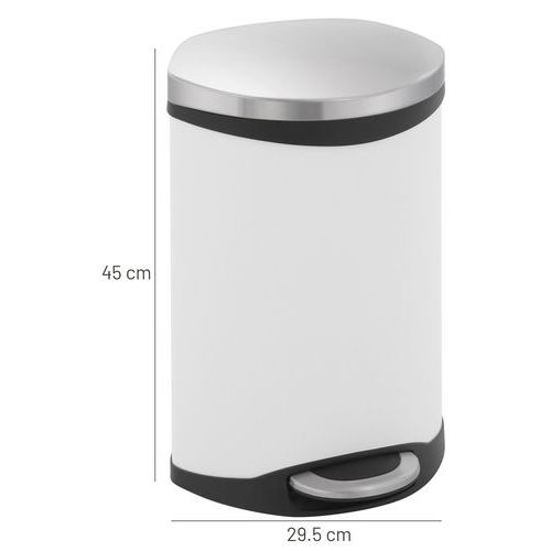 Poubelle à pédale unique grâce à sa forme coquille. Elle est munie d'un couvercle soft closing et liner en plastique. Finition anti-traces de doigts.