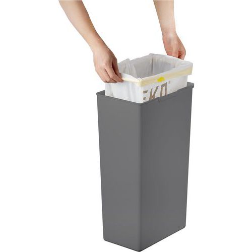 - Contient un support de sac et pas de seau intérieur, laissant un très grand contenu pour les déchets.