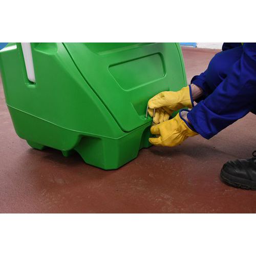 Présentoir d'affichage mobile personnalisable. Utilisation possible à l'intérieur et à l'extérieur. Déplacement aisé avec poignées ergonomiques. Facile à monter et à démonter, simple d'entretien. Matériau haute résistance UV et produits chimiques. Couvercle incliné : écoulement aisé de l'eau de pluie. 2 roues robustes Ø200 mm. Panneau hauteur 1220 mm. Bac ouverture 98°, hauteur 505 mm. Fabriqué au RU