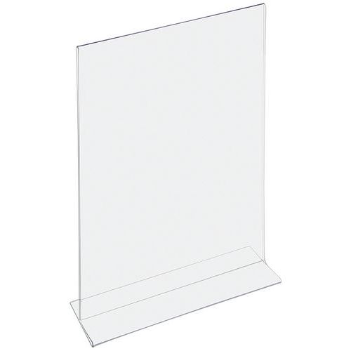 Présentoir de table transparent forme T, présentation sur deux faces.