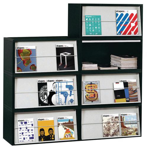 | Intitulé du produit | Présentoir Multibloc pour brochures, Nb de cases/colonne: 1, Coloris: Noir, Pour format: 210 x 297 mm (A4) |