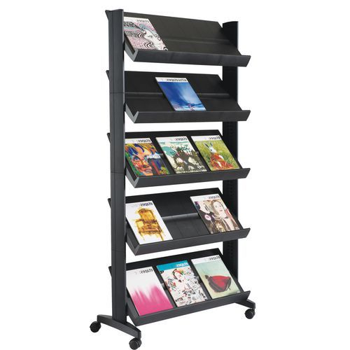 | Intitulé du produit | Présentoir simple face, Nb de tablettes: 5, Coloris: Noir, Type: 15 x A4, Largeur hors tout: 85.5 cm |
