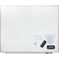Surface pour écrire avec marqueur.  Surface magnétique.  Cadre en aluminium avec coins en plastique gris clair.  Longueur de l'auget = hauteur du tableau.  Fourni avec matériel de montage, auget et marqueur.