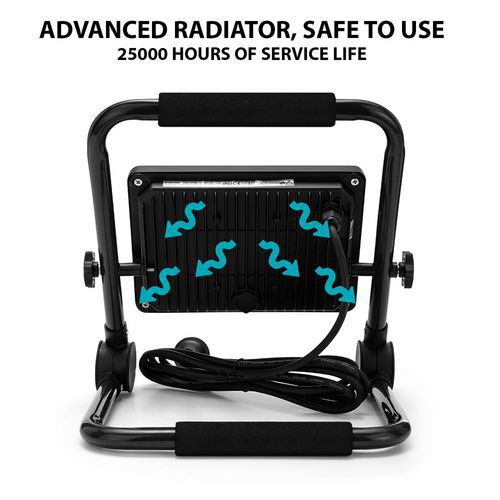 Facile à utiliser : support métallique orientable avec poignée rembourrée pour déplacer facilement la lampe de travail sur le chantier , base large pour une meilleure stabilité.