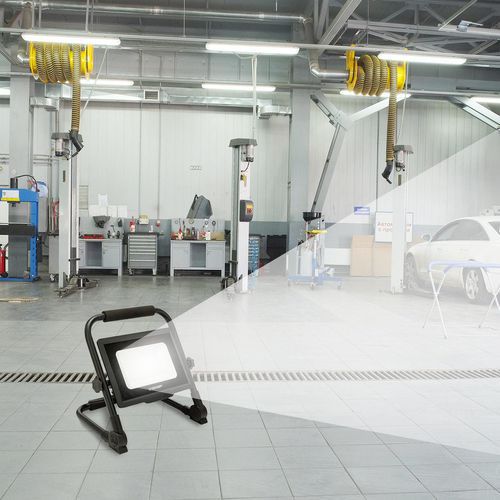 Puissance : le projecteur LED à économie d'énergie de 50 W / 4 000 lumens éclaire le chantier avec une lumière blanche naturelle (4 000 K) et rend les conditions de travail optimales, même à l'extérieur (IP65).