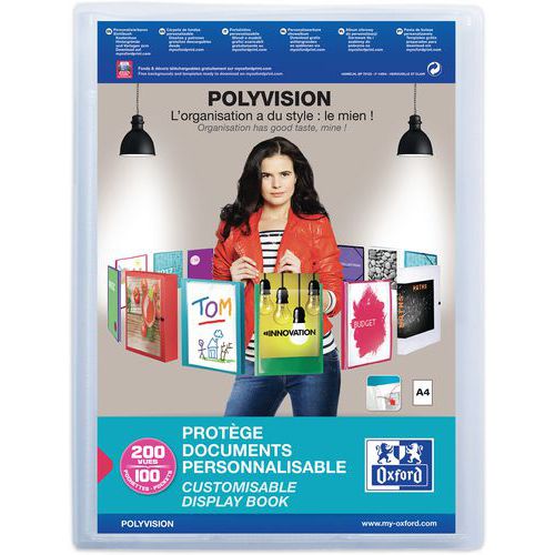 | Intitulé du produit | Protège documents polyvision A4 assorti, Pour format: 210 x 297 mm (A4), Nb de pochettes: 100 |