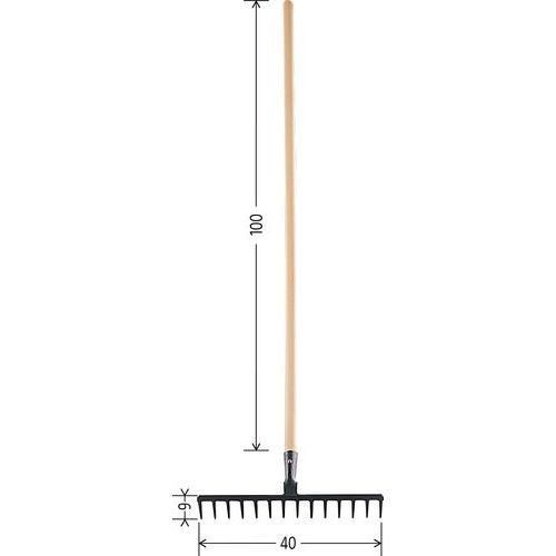 | Intitulé du produit | Râteau, Largeur: 40 cm, Manche longueur: 100 cm, Nb de dents: 14, Poids: 1.3 kg |