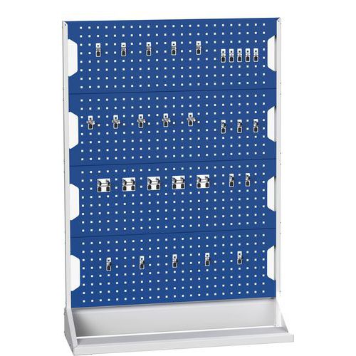 Racks disponibles en version fixe ou mobile, a équiper d’accessoires Perfo. Ces racks sont conçus pour une grande capacité de stockage. Permet d’avoir l’outillage toujours à porter de mains pour une meilleure productivité. Largeur 1000 mm, profondeur 550 mm Hauteurs version fixe : 1125mm, 1450 mm et 1775 mm Hauteur version mobile: 1250 mm avec roues de diamètre 100 mm Simple ou double faces Disponibles en kit avec accessoires ou nus à équiper selon vos besoins Finition peinture époxy Ossature coloris gris RAL 7035 et panneaux Bleu 5010 Bac inférieur en option pour tous les modèles à double face Fabriqué au RU