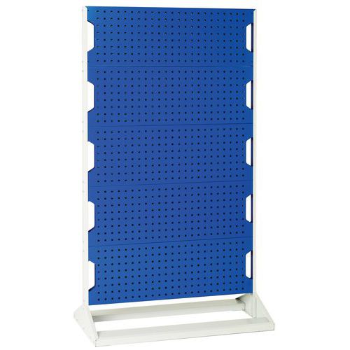 Racks disponibles en version fixe ou mobile, a équiper d’accessoires Perfo. Ces racks sont conçus pour une grande capacité de stockage. Permet d’avoir l’outillage toujours à porter de mains pour une meilleure productivité. Largeur 1000 mm, profondeur 550 mm Hauteurs version fixe : 1125mm, 1450 mm et 1775 mm Hauteur version mobile: 1250 mm avec roues de diamètre 100 mm Simple ou double faces Disponibles en kit avec accessoires ou nus à équiper selon vos besoins Finition peinture époxy Ossature coloris gris RAL 7035 et panneaux Bleu 5010 Bac inférieur en option pour tous les modèles à double face Fabriqué au RU
