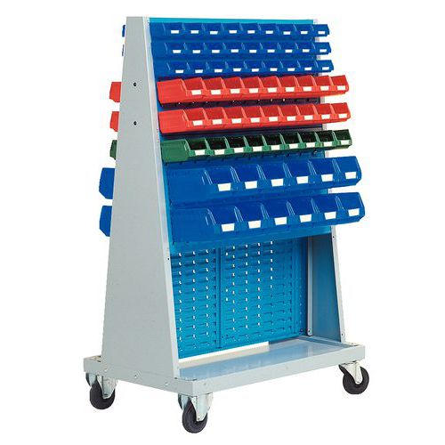 | Intitulé du produit | Rack mobile équipé de bacs à bec Kangourou, Hauteur hors tout: 1600 mm, Largeur hors tout: 1020 mm |