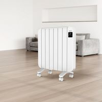 Corps en aluminium. Utilisation murale possible. Ecran LED avec commande tactile. Réglage numérique de la température (5–30°C). Mode ECO/Confort/Antigel. Programmable. Fonction fenêtre ouverte. Protection de sécurité contre la surchauffe. Protection anti basculement. Écoparticipation (Recupel) Garantie client : 2 ans