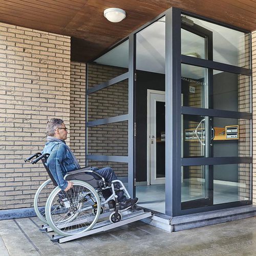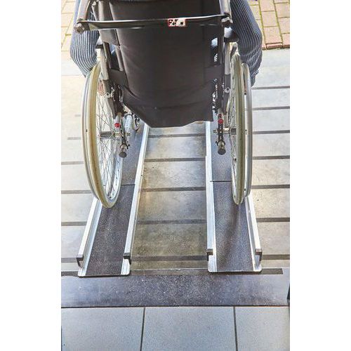 Paire de rampe télescopique avec revêtement antidérapant. Télescopique en 3 positions. Compatible fauteuil roulant.