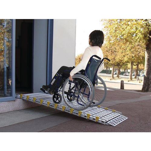 Rampe d'Accès Enroulable en Aluminium ROLL-a-RAMP Dispose une surface antidérapante. Robuste et légère. Possède une durabilité élevée. Résiste au intempérie. Entièrement enroulable, la Rampe ROLL-a-RAMP s'installe facilement afin de permettre le franchissement d'obstacles ou l'accès à certains véhicules pour personnes à mobilité réduite. Conçue en aluminium aéronautique anodisé, elle ne craint pas les intempéries et sa robustesse assure une durabilité élevée dans le temps. Accessibilité handicapé