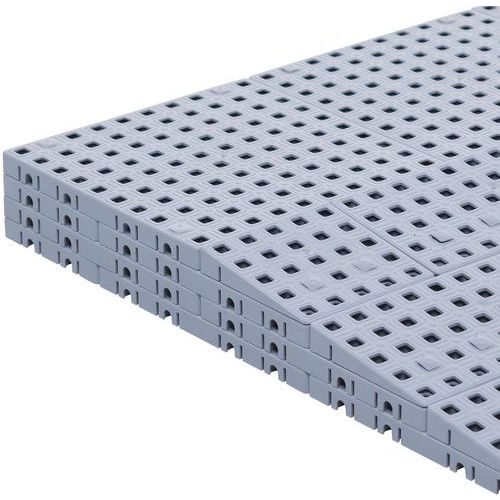 Rampes de seuil modulables pour facliter l'accès aux PMR. Supporte jusqu'à 2000kg. Antidérapante. Fabrication française. Cette rampe permet de franchir de 18 à 199 mm de hauteur. Constituée de polyéthylène, ces rampes de seuil sont entièrement modulables et s'adaptent à toutes les marches