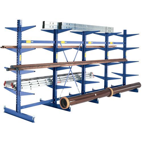 Rayonnage à bras simple et double face pour le stockage de charges longues.