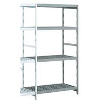 Rayonnage haute résistance températures extrêmes. En aluminium anodisé et tablettes ajourées en polystyrol. Entretien parfait avec clayettes lavables au lave-vaisselle. Pieds réglables pour lissage des inégalités au niveau du sol. Rayonnage d'assemblage simple pour montage facile et rapide. Idéal dans les secteurs alimentaire et horeca avec la restauration, cantines collectives