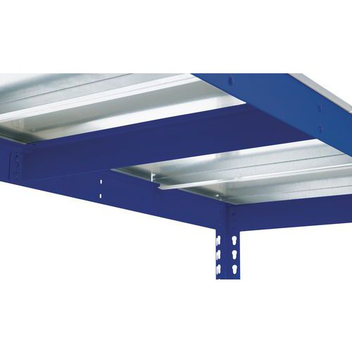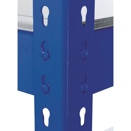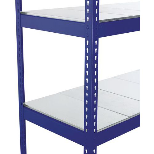 Rayonnage simple et ultra-solide. Adapté au stockage des boîtes d'archives imposantes. Tablette pleine acier zingué, matériau très résistant à tous types d'environnement. Finition peinture époxy sur montant et lisse, facile d'entretien, bleu ou gris clair. Étagère d'entrepôt de montage simple et rapide, sans l'aide d'outils spécifiques.