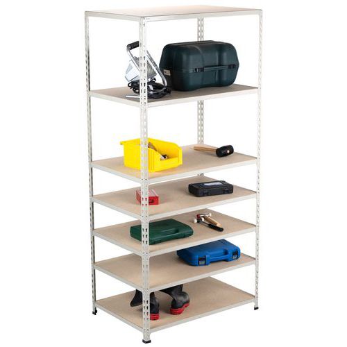 Rayonnage simple et ultra-solide pour le stockage de toutes pièces d'archives. Tablette pleine bois parfaite pour entreposer caisses, boîtes et/ou classeurs. Belle finition peinte époxy, facile d'entretien, au choix : bleu ou gris clair. Étagère d'entrepôt de montage aisée, sans l'aide d'outils spécifiques.