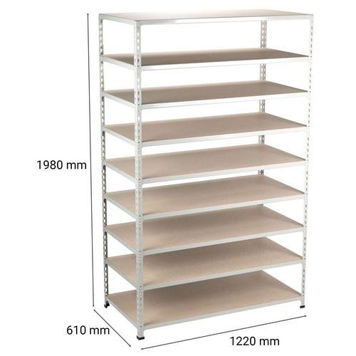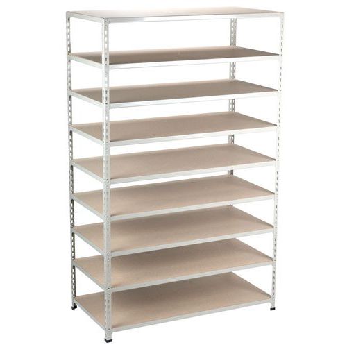 Rayonnage simple et ultra-solide pour le stockage de toutes pièces d'archives. Tablette pleine bois parfaite pour entreposer caisses, boîtes et/ou classeurs. Belle finition peinte époxy, facile d'entretien, au choix : bleu ou gris clair. Étagère d'entrepôt de montage aisée, sans l'aide d'outils spécifiques.