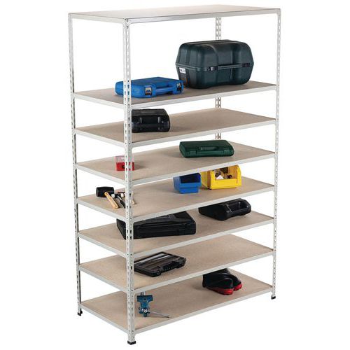 Rayonnage simple et ultra-solide pour le stockage de toutes pièces d'archives. Tablette pleine bois parfaite pour entreposer caisses, boîtes et/ou classeurs. Belle finition peinte époxy, facile d'entretien, au choix : bleu ou gris clair. Étagère d'entrepôt de montage aisée, sans l'aide d'outils spécifiques.