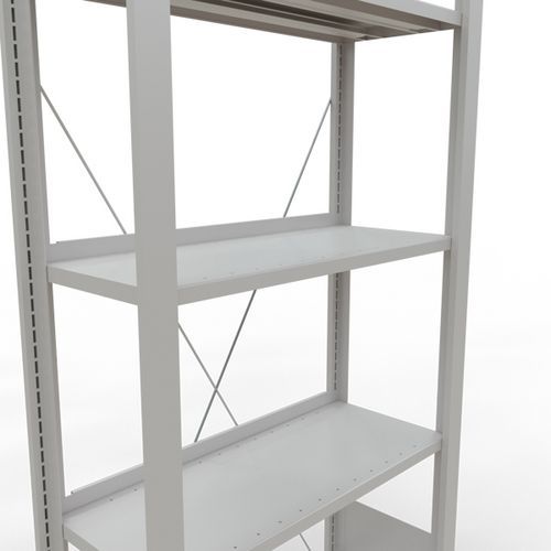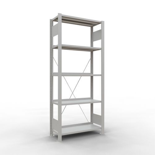 Rayonnage bureau de belle finition pour charge légère. Tablette pleine tôlée pour toutes natures d'objets. Montant plein tôlé sans perforation face avant. Barre de butée pour éviter la chute des objets. Pied de protection pour préserver les sols. Montage sans outils, par système de clip.