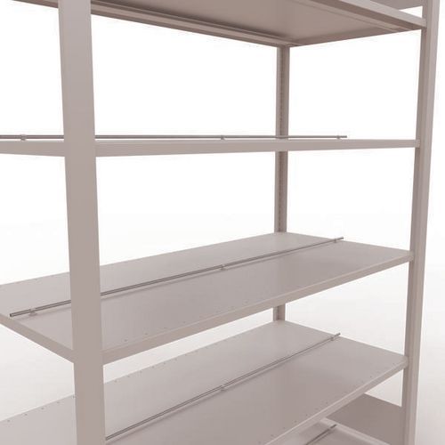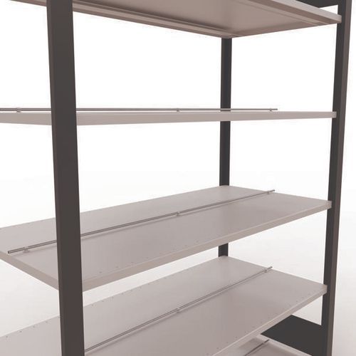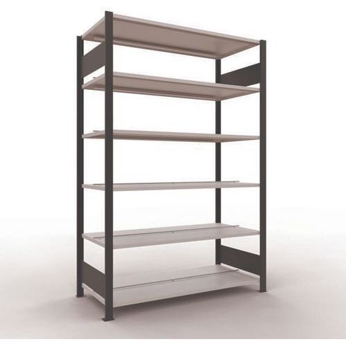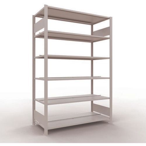 Rayonnage bureau de belle finition pour charge légère. Tablette pleine tôlée pour toutes natures d'objets. Butée centrale pour délimitation de chaque face. Montant plein tôlé sans perforation face avant. Pied de protection pour préserver les sols. Montage sans outils, par système de clip.