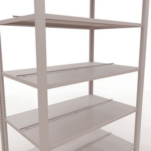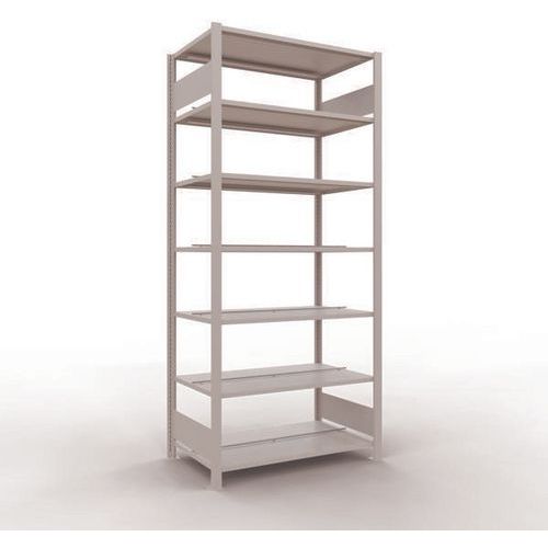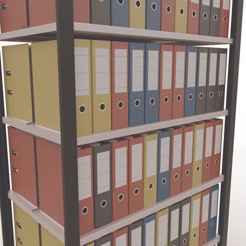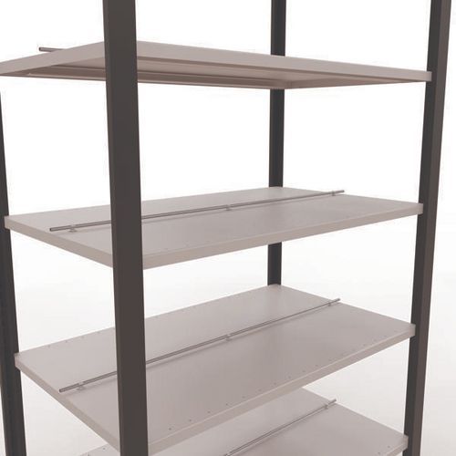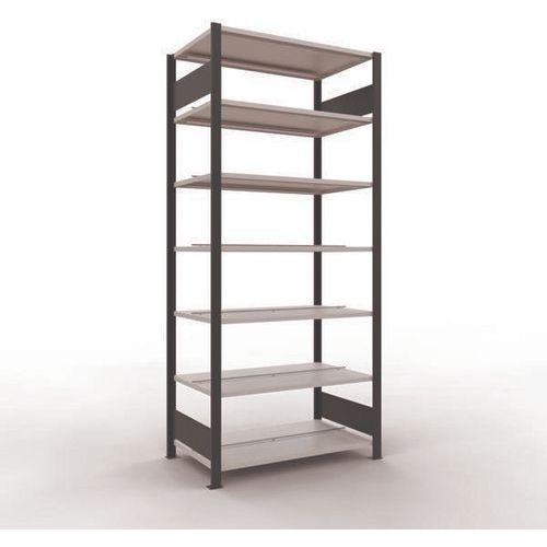 Rayonnage bureau de belle finition pour charge légère. Tablette pleine tôlée pour toutes natures d'objets. Butée centrale pour délimitation de chaque face. Montant plein tôlé sans perforation face avant. Pied de protection pour préserver les sols. Montage sans outils, par système de clip.