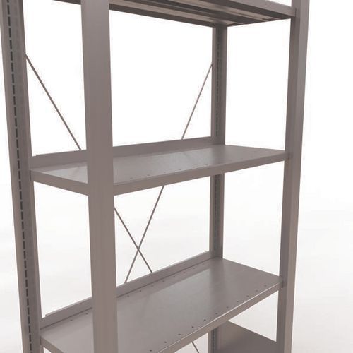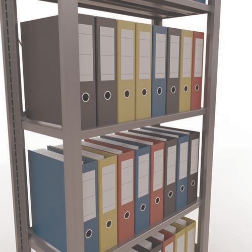 Rayonnage bureau de belle finition pour charge légère. Tablette pleine tôlée pour toutes natures d'objets. Montant plein tôlé sans perforation face avant. Barre de butée pour éviter la chute des objets. Pied de protection pour préserver les sols. Montage sans outils, par système de clip.